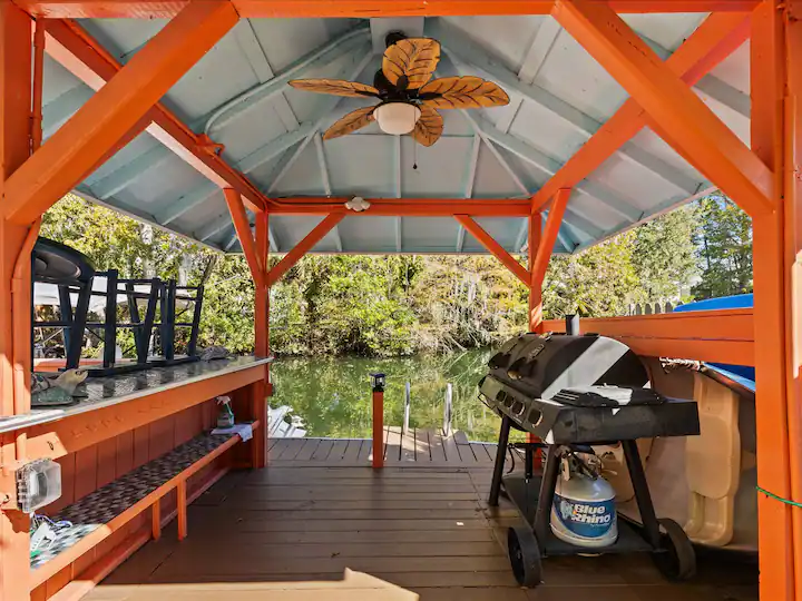 Homeowner’s boat is here on property – this boat is NOT included in rental, and is NOT available for rent, unfortunately.